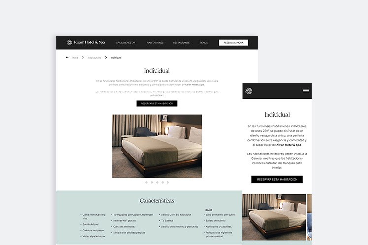 Kwam hotel & spa: Página web (responsive mobile)