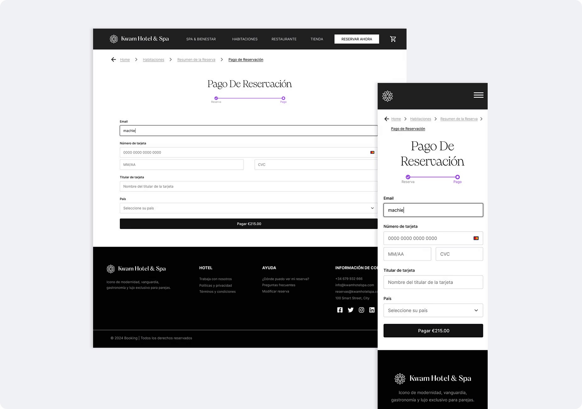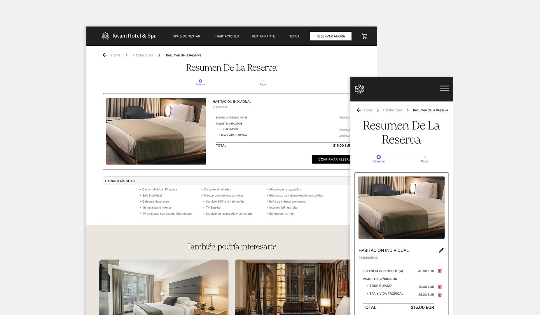En el proceso, leen las excelentes reseñas del lugar y conocen más sobre las instalaciones y filosofía del Kwam Hotel & Spa.