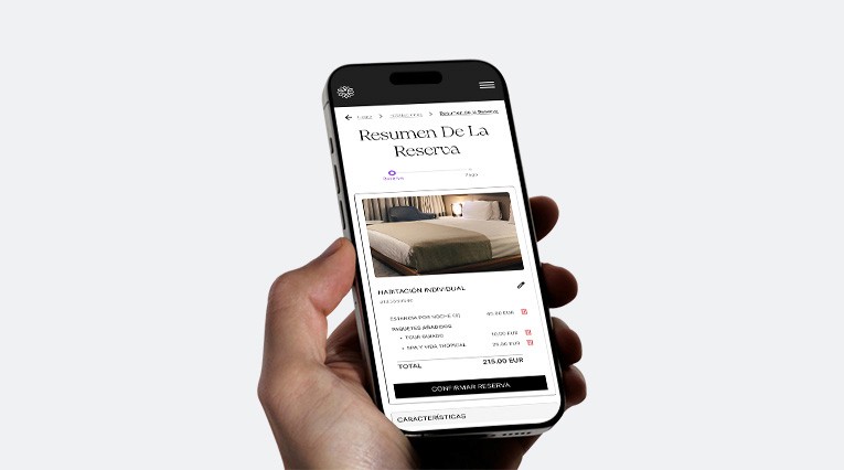 SEGUNDA FASE (Fase de Compra): Han quedado impresionados por la fusión de lujo y modernismo urbano que define al hotel. Las imágenes y los atractivos planes para parejas captaron su interés, y se sintieron seguros al revisar comentarios de clientes anteriores y experimentar una comunicación fácil en varios idiomas con el hotel.