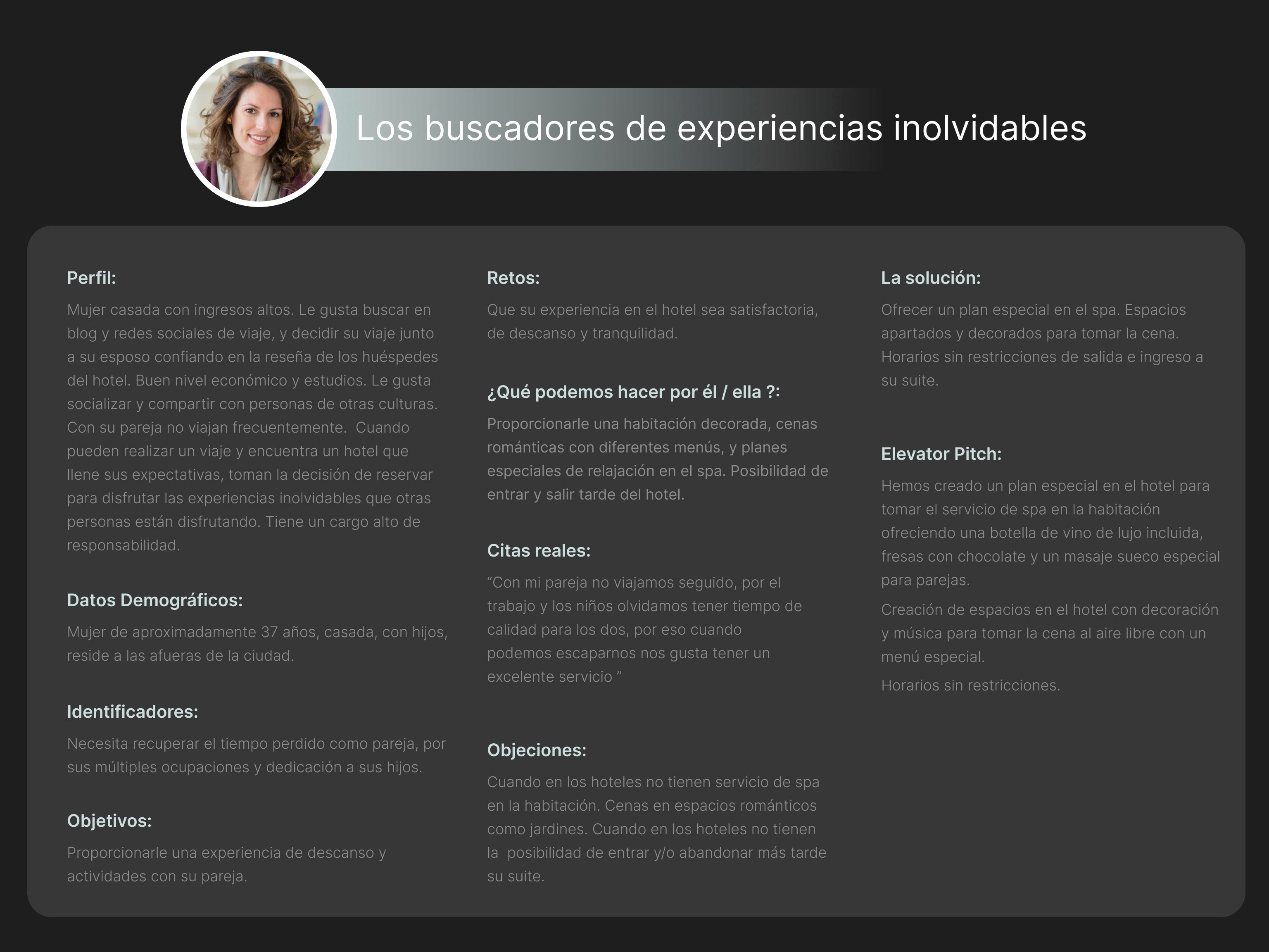 PRIMERA FASE (Fase de Pre-Compra): A través de recomendaciones de amigos, una pareja de 35-40 años con ingresos medio-altos, conoce el Kwam Hotel & Spa.